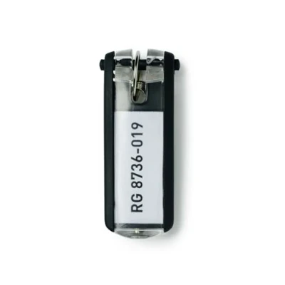 INNOVATIVE DESIGN: The innovative key tags allows a clear overview of the labels, ensuring keys always remain visible and are quick and easy to find. EASY TO USE: The key clips have an easy to access front panel which can be unclipped to allow for clear inserts to be added and then safely locked in place INCLUDES: A pack of 6 key clips in a stylish black colour. The clips measure 24x68x15mm (WxHxD) to make them easily visible FREE TEMPLATES: Want to create professional inserts for your key tags? Well using the free to use DURAPRINT software this is made possible in seconds. Head over to the durable website to find out more PERFECT FOR KEY BOXES: The durable key clip is designed to work perfectly with a wide range of key boxes including durables very own range.