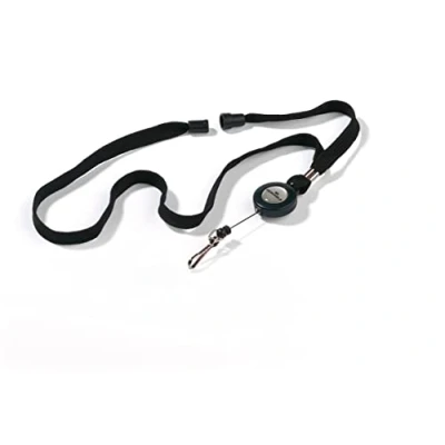 ROBUST: Textile lanyard 10 mm with extendable badge reel with spring hooks. The product is made from premium material so that is built to last SAFETY: The lanyard has a safety release which if it gets trapped, the lanyard will release and open for extra safety VERSATILE: The lanyard with safety release can be combined with a wide variety of name badges from Durable PRODUCT DETAIL: The lanyard colour is black and has a length of 44 cm which makes it perfect for use with access control AREAS OF APPLICATION: Ideal for us with ID cards and pass holders for access control in banks, airports, schools, etc.