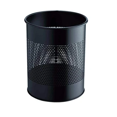 Durable Metal Round Waste Bin Black 15 Litre Capacity, Stylish 165 mm Perforated Ring, Basket for Offices, Schools, Home, etc.