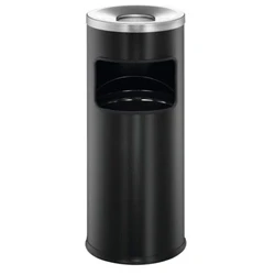 Durable Metal Round Waste Bin with Ashtray Top Black Capacity 17 Litres 2 Perfect For Sheltered Outdoor Areas
