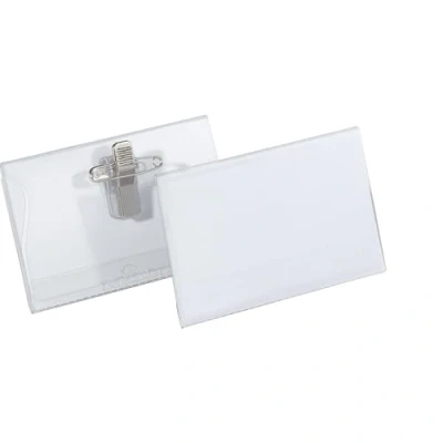 GLASS CLEAR: These name badges are made from glass clear plastic to not only provide durability but to make the badges easy to read at distance EASY ATTACHMENT: The badges include a combi clip for securely attaching the name badge to various types of clothing MADE IN GERMANY: Durable is one of the leading German brand manufacturers of office organisation and presentation equipment AREAS OF APPLICATION: Easy to use name badges which is perfect for large events, conferences, workplaces, etc, DIMENSIONS & PACK SIZE: Badges are in landscape format and measure 40 x 75mm and come as a pack of 50 name tags