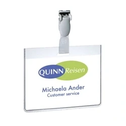 Durable Name Badge 60 x 90 mm with Plastic Clip Transparent Pack of 25 Badges Includes Blank Insert Cards Ideal for Events and Visitor Management