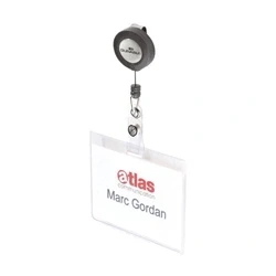 Transparent security pass holder with badge reel for holding 1 single card. Badge reel securely closes the badge to keep the insert protected and secure. Can also be used with lanyard or chain.