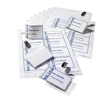 20 landscape format visitor name badges and printable inserts Visitor badges have a drop-level front for simple replacement of inserts Insert sheets are micro-perforated and can be used with laser, inkjet or dot matrix printers Use DURAPRINT to design professional inserts quickly and easily. Company logos are easily placed on to badge inserts and data can be imported from existing databases such as Excel and Access Durable is one of the leading German brand companies in the field of office organisation and presentation materials