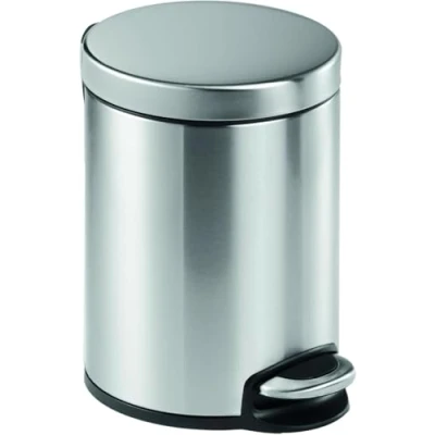Durable Pedal Bin Stainless Steel Round, 5 Litre Capacity, Silent Closing Lid, Perfect For Offices, Kitchens, Bathrooms, etc, Silver