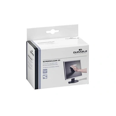 Durable SCREENCLEAN Biodegradable Screen Cleaning Wipes, for Phones, Laptops, TVs, iPads and Computers, 50 Sachets