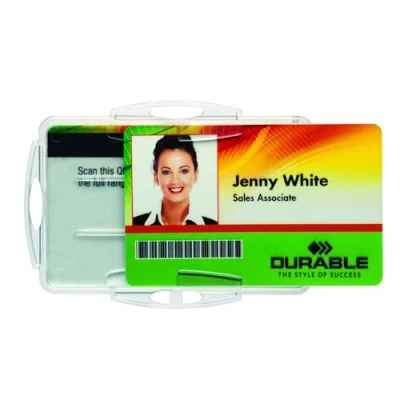 Durable Security Pass Holder Duo 54 x 85 mm Transparent Pack of 10 Badges Glass Clear Ideal for and Visitor Management