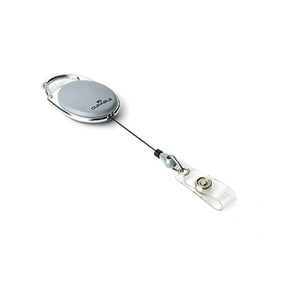 Stylish oval badge reel with coloured metal plated finish and integrated metal clip. Provides quick and easy access to security passes and name badges with punched hole for a clip. Press fastener attachment. Press fastener attachment. Pack: 10 per pack