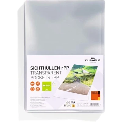 Durable Transparent Document Pockets A4 Made of Recycled PP Easily Opens at The Side Pack 100