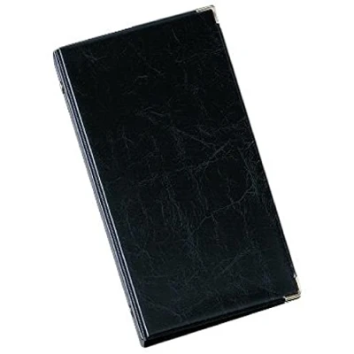 The exclusive business card album 25 clear polypropylene pockets for 200 business cards (57 x 90 mm) Extension set for further 80 cards with refill pack, ref. 2387 12-piece polypropylene index with A-Z index Four ring filing mechanism