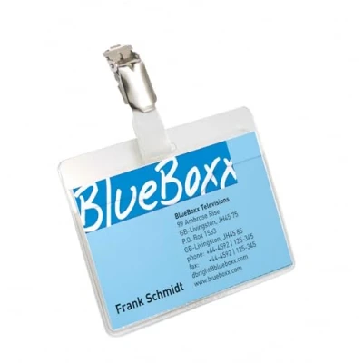 Equipped with a rotating metal clip, the badges securely attach to various types of clothing without causing any damage. The clip is designed to hold the badge vertically, providing optimal visibility while maintaining a sleek and professional look. Additionally, the clip fastener seals the top of the sleeve, ensuring that your insert remains secure during use.