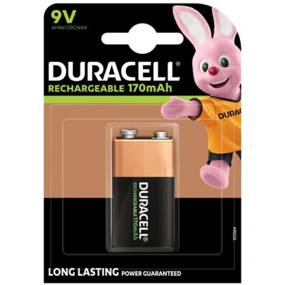 AmazonLONG LASTING POWER: Get battery life out of power-hungry devices with these powerful 9-volt 170 mAh NiMH batteries ENJOY HOURS OF USE IN HIGH-PERFORMANCE DEVICES: For hours of power in toys, torches, smoke alarms, radios and all other appliances powered by 9 volt batteries HOLDS CHARGE FOR UP TO 12 MONTHS when not in use* ITEMS INCLUDED: 1x Pack of 1 Duracell Rechargeable Batteries, Size: 9V, Capacity: 170 mAh,Voltage: 8.4 V Type: NiMH *Retain up to 70 percent of their charge after 12 months when not in use