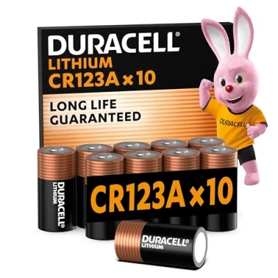SUITABLE FOR A WIDE RANGE OF DEVICES: Duracell CR123 high power lithium batteries 3V (CR123A / CR17345) are ideal for your cameras, flashlights, smoke detectors and other small electronic devices LONG LIFE GUARANTEED: you can be confident these batteries will be ready when you need them 10 YEARS IN STORAGE GUARANTEED: Our technologies keep unused batteries fresh for up to 10 years in their packaging LEAKAGE PREVENTION: helps prevent our specialty batteries from leakage RELIABLE batteries for your specialty devices Packaging may vary