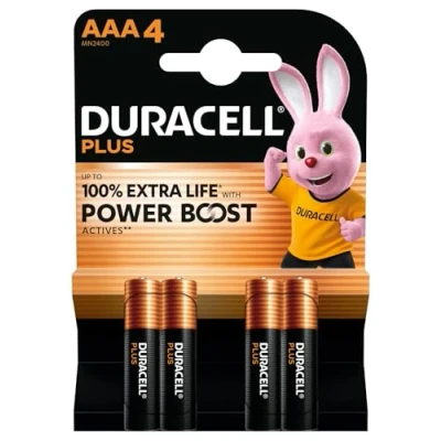 ManoManoGeneral description Pack of 4 Duracell AAA Cell Plus with Power Boost Batteries. Duracell Plus Power Boost Batteries are engineered for reliable, long-lasting performance. Whether you're powering remote controls, wireless mice, toys, or torches, these batteries deliver consistent energy when you need it most. With trusted Duracell quality, they’re a smart choice for both home and professional use. Designed for leak resistance and dependable output, they’re perfect for keeping in drawers, toolkits, or office supplies. From everyday essentials to high-drain devices, Duracell Plus Power Boost batteries keep your gadgets running smoothly, day after day.