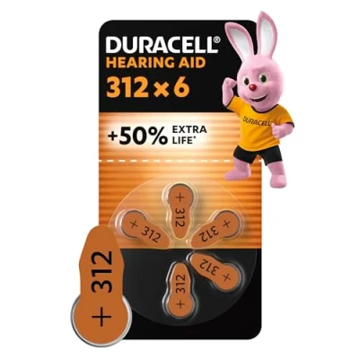 Duracell size 312 Hearing Aids batteries (pack of 6) +50% Extra Life, Easy Installation, 100% recyclable packaging, guaranteed 4 years in storage