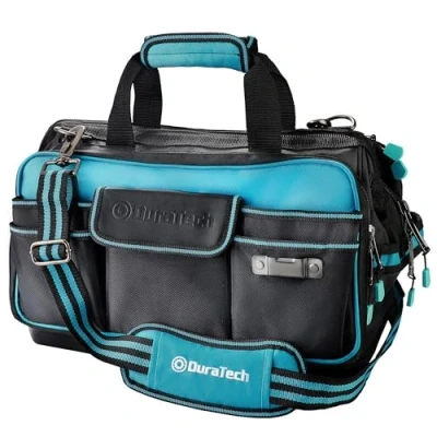 JoybuyThe DURATECH 17-inch tool bag features a durable 840D Oxford cloth exterior, 32 pockets, and a hard base for up to 30kg capacity. With a wide-open design, adjustable shoulder strap, and rust-resistant hardware, it’s ideal for professionals and homeowners alike.