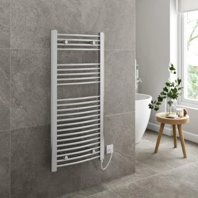 ✔️ PREMIUM DESIGN - 1100 x 500mm curved chrome electric heated towel rail radiator. This bathroom radiator comes with matching fixing brackets. Please note radiator valves are not included and must be purchased separately which you can find in our store ✔️ WARMING & DRYING - A heated towel rail is great for warming up your towels while you’re in the bath or shower and for drying them afterwards. They’re also a fantastic source of heat. The 23 rails provide ample space for all your towels ✔️ DURABLE & BUILT TO LAST - The towel rail has been made from premium steel which is durable and an excellent conductor of heat. The modern polished chrome finish is perfect for any bathroom and is super durable ✔️ DIMENSIONS & TECH SPECS - 1100mm (H) x 500mm (W) x 105-125mm (D). This chrome towel warmer has a fantastic heat output without compromising on efficiency. Heat Output (depending on Delta T): 620-1660 BTU; Weight: 12.21kg. Comes with a 250W manual element ✔️ GUARANTEE & CERTIFICATIONS - The heated towel rail comes with a fantastic 10-year guarantee and 2-year guarantee on the element so you can have complete peace of mind with your purchase