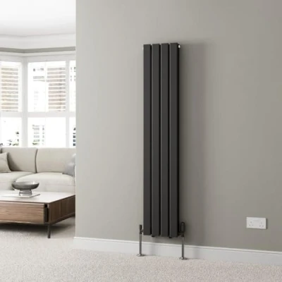 DuraTherm® 1600 x 304mm Black Vertical Designer Radiator Double Column Flat Panel Modern Central Heating Panels Bathroom Radiators