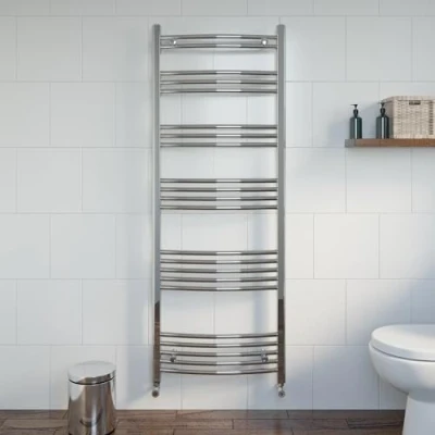 ✔️ PREMIUM DESIGN - 1600 x 600mm curved chrome heated towel rail radiator. This bathroom radiator comes with matching fixing brackets. Please note radiator valves are not included and must be purchased separately which you can find in our store ✔️ WARMING & DRYING - A heated towel rail is great for warming up your towels while you’re in the bath or shower and for drying them afterwards. They’re also a fantastic source of heat. The 22 rails provide ample space for all your towels ✔️ DURABLE & BUILT TO LAST - The towel rail has been made from premium mild steel which is durable and an excellent conductor of heat. The polished chrome finish is perfect for any bathroom and is super durable ✔️ DIMENSIONS & TECH SPECS - 1600mm (H) x 600mm (W) x 56mm (D). This chrome towel warmer has a fantastic heat output without compromising on efficiency. Heat Output (depending on Delta T): 787-2107 BTU; Pipe Size: 22*19mm; Weight: 9.69kg. They can be dual fuelled with the purchase of a heating element ✔️ GUARANTEE & CERTIFICATIONS - The heated towel rail comes with a fantastic 10 year guarantee so you can have complete peace of mind with your purchase and is CE approved