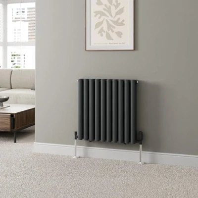 DuraTherm® 600 x 600mm Anthracite Horizontal Designer Radiator Double Column Oval Tube Modern Central Heating Panel Bathroom Radiators