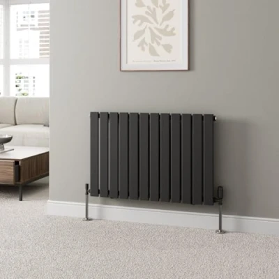 DuraTherm® 600 x 908mm Black Horizontal Designer Radiator Single Column Flat Panel Modern Central Heating Panels Bathroom Radiators