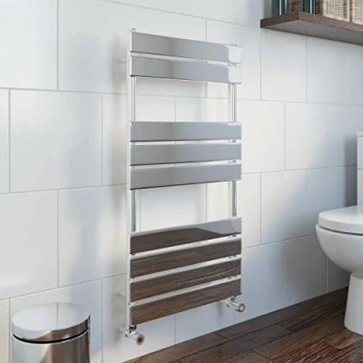 ✔️ PREMIUM DESIGN - 950 x 500mm flat panel chrome heated towel rail radiator. This bathroom radiator comes with matching fixing brackets. Please note radiator valves are not included and must be purchased separately which you can find in our store ✔️ WARMING & DRYING - A heated towel rail is great for warming up your towels while you’re in the bath or shower and for drying them afterwards. They’re also a fantastic source of heat. The 9 rails provide ample space for all your towels ✔️ DURABLE & BUILT TO LAST - The towel rail has been made from premium mild steel which is durable and an excellent conductor of heat. The polished chrome finish is perfect for any bathroom and is super durable ✔️ DIMENSIONS & TECH SPECS - 950mm (H) x 500mm (W) x 96-106mm (D). This chrome towel warmer has a fantastic heat output without compromising on efficiency. Heat Output (depending on Delta T): 716-1919 BTU; Bar Size: 68*12mm; Weight: 9.76kg. They can be dual fuelled with the purchase of a heating element ✔️ GUARANTEE & CERTIFICATIONS - The heated towel rail comes with a fantastic 10-year guarantee so you can have complete peace of mind with your purchase and is BS EN 442 compliant
