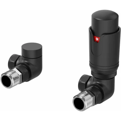 General description This DuraTherm Corner Black Thermostatic Radiator Valve Pack is designed to add a touch of style while effectively controlling the temperature of your heated towel rail. With its modern design and stylish black finish, this valve not only enhances the aesthetic of your space but also ensures energy efficiency by maintaining a stable temperature without unplanned rises. Technical specifications Colour: Black Connection Type: Angled Control Type: Thermostatic Lockshield Included: Yes Connection Size: 15mm Style: Modern Element Type: Liquid Bi-Directional: Yes Compatibility and accessories Includes a lockshield valve for balancing heating across your home. Installation Simply twist the head to select your desired heat setting. The lockshield valve features a plastic cap to prevent accidental adjustments once set. Usage Control the temperature of your heated towel radiator with ease. Enjoy a constant stable temperature for energy efficiency. Other information 10-year