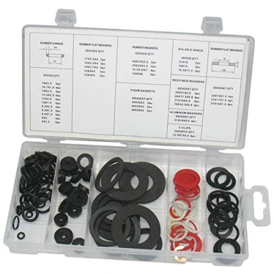 Contents: Rubber O-Rings: Inner Dia x Width: Size (mm): 4 of 16 x 2.5, 16.7 x 1.9,12.5 x 2.5, 11 x 2.5, 10 x 1.5, 9.5 x 2.5, 9.5 x 1.5, 5. xmm, 5 of 6.5 x 1.5mm, 6 of 4. x1.5mm, 8 of 14 x2.5mm Faucet Washers: Outer Dia x Inner Dia x Depth: Size (mm): 3 of 17 x 4.2 x 4, 16 x 3.2 x 4, 14 x 3.7 x 4, 14 x 8 4mm, 2 of 13 x 4 x 4mm. Rubber Washers: Outer Dia x Inner Dia x Depth: Size (mm): 2 of 44 x 33 x3.5, 30 x 20 x 3.5mm, 4 of 16.5 x 10 x 7, 14 x 9 x 6mm Foam Washers: Outer Dial x Inner Dial x Depth: Size (mm): 2 of 44 x 28 x3, 44 x 26 x 3, 36 x 28 x 3mm. Nylon O-Rings: Inner Dia x Width: Size (mm): 2 of 21 x 16, 19 x 15, 16.5 x 11.5mm. Aluminium Washers: Outer Dia x Inner Dia x Depth: Size (mm): 4 of 21 x 18 x 0.6mm Red Fibre Washers: Outer Dia x Inner Dia x Depth: Size (mm): 4 of 24 x 21 x 0.8, 24 x 17.5 x 0.8, 21 x 16 x 0.8, 18 x 10.5 x 0.8mm C-Clips: Outer Dia x Inner Dia x Depth: Size (mm): 4 of 12.5 x 7 x 0.5mm, Manufacturer: Duratool