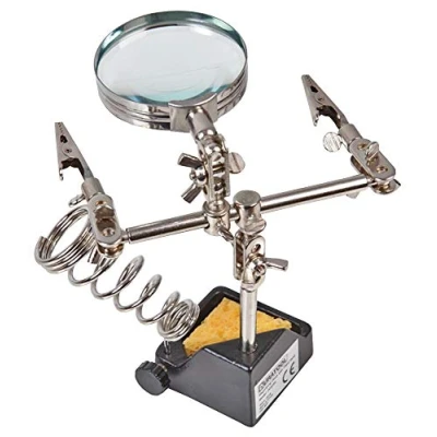 Third-Hand Clamp Tool with Magnifier & Soldering Iron Holder - D03285 Country of Origin: China Model number: D03285 The package dimension of the product is: 13"L x9.5"W x7"H, Weight: 1.1243575362 pounds, Manufacturer: DURATOOL