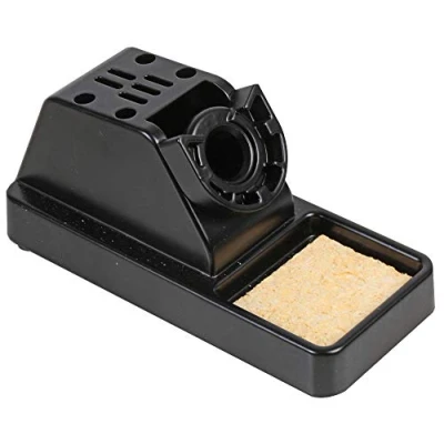 Stable & Secure: Angled stand with metal base plate keeps your soldering iron firmly in place during use. Cleaning Sponge Included: Remove solder debris easily to maintain clean and efficient soldering tips. Ideal for All Users: Perfect for hobbyists, DIY electronics, or professional soldering work. Fits Standard Irons: Centre hole diameter 20mm accommodates most soldering iron tips. Durable Construction: Robust design ensures longevity and safe soldering operations.