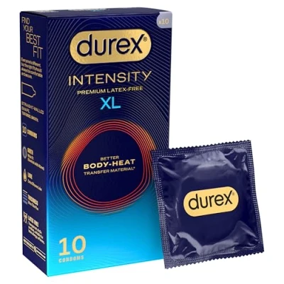 REVOLUTIONARY BODYFEEL MATERIAL: Durex Intensity features our innovative BodyFeel material—designed for better body heat transfer and mouldability, helping you feel more of your partner’s warmth; A new premium condom experience from Durex LATEX FREE & ALLERGY FRIENDLY: Durex Intensity is made from premium nitrile, a first-of-its-kind latex-free condom suitable for people with latex allergies; Offers a comfortable fit without natural rubber latex proteins ULTRA THIN PLUS FOR HEIGHTENED SENSATION: Durex Intensity is our thinnest condom yet—thinner than a human hair—engineered to enhance sensitivity and intimacy while maintaining protection; Designed for those who want to feel more MOULDS TO YOUR SHAPE FOR A CLOSER FIT: Made with form-fitting BodyFeel material, Durex Intensity moulds to the shape of your penis for a tailored fit; Designed to adapt to you and support a more connected experience WIDE FIT CONDOMS: With a nominal width of 57mm, Durex Intensity offers a regular fit and straight shape with a reservoir tip. Designed for ease of use and a secure, reliable experience during intimate moments PRE-LUBRICATED & TRANSPARENT: Durex Intensity condoms are transparent and pre-lubricated with silicone-based Durex lube for a smooth, long-lasting glide; Easy to use and designed to support comfort and confidence TRUSTED DUREX QUALITY & EXPERTISE: From the No.1 condom brand with over 90 years of experience; 100percent electronically tested and backed by five additional quality checks carried out on every batch to ensure safety, durability, and reliability