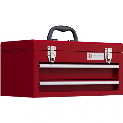 DURHAND 2 Drawer Tool Chest, Lockable Metal Box with Ball Bearing Runners, Portable Toolbox, 460mm x 240mm 220mm, Red