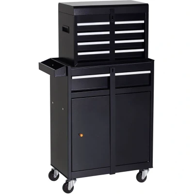 DURHAND Tool Chest 2 in 1 Metal Cabinet Storage Box with 5 Drawers Pegboard Wheels 60x28x104.5cm Black