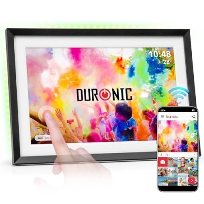 Duronic Digital Photo Frame PF2A BK WiFi Picture 10.1 Touchscreen Photoframe with Frameo Capacity Electronic Frames for Gifts, Family, Friends, Display Black