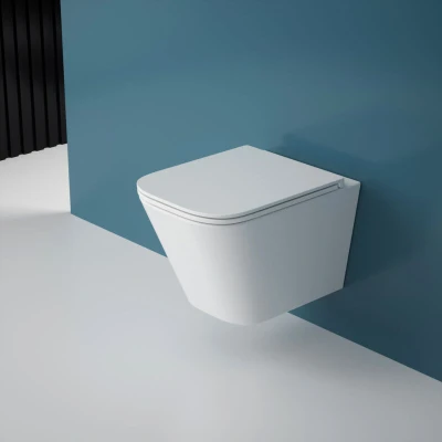 General description Hand Cast Ceramic Wall Hung Toilet Pans are a bathroom essential. With a wide range of shapes and sizes, whether you are looking for a compact pan for cloakrooms or a designer unit for a modern family bathroom, this rimless wall hung square toilet is an excellent choice. It includes a soft close toilet seat and all fittings are UK standard, making installation simple. Technical specifications Toilet Type: Wall Mounted Model: Aachen 112 Width: 340mm Depth: 490mm Height: 350mm Color: Glossy White Quality of ceramics: Grade A Material of Toilet Seat: Urea Formaldehyde (UF) Compatibility and accessories Included: Toilet Pan, Pan Fitting Kit, Soft Close Toilet Seat Not Included: Cistern Installation Instructions included are universal to the Aachen range. Parts may vary based on model. We recommend you install by a professional for the best result. Usage With rimless pans, there are no difficult-to-reach areas under the rim, making maintenance easier and more hygienic.