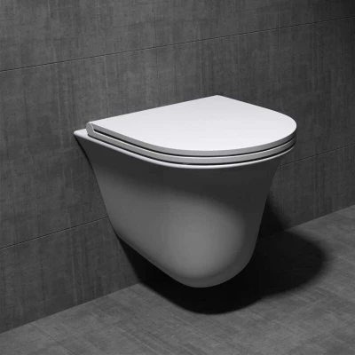 Durovin Bathrooms Ceramic Rimless Wall Hung Toilet D Shape Include WC Pan with Quick Release Soft Close Seat