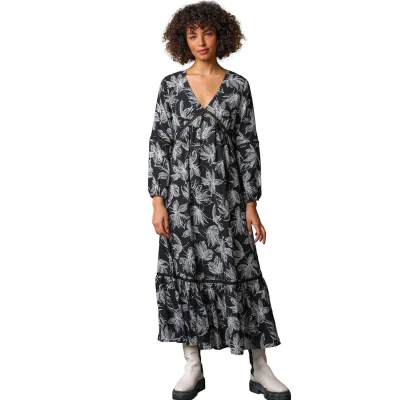 Dusk Fashion Women Floral Print Tiered Maxi Dress Ladies Spring Everyday Summer Evening Vacation Work Holiday Long Sleeve Smart Casual Black Size 10