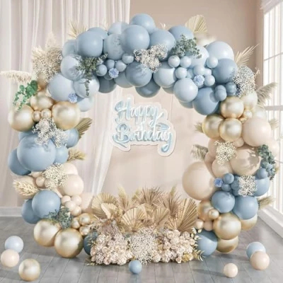💠BLUE BALLOON ARCH KIT -This 109PCS blue balloon arch kit includes 1×18" dusty blue balloon, 30×10" dusty blue balloons, 10×5" dusty blue balloons, 1×18" sand white balloon, 10×10" sand white balloons, 10×5" sand white balloons, 1×18" pastel blue balloon, 20×10" pastel blue balloons, 10×5" pastel blue balloons, 10×10" metallic pastel gold balloons, 1pc balloon chain, 5 sheets of glue dots (total 100 glue dots) 💠WIDELY APPLICATIONS - Dusty blue party balloons are perfect party supplies for party decorations. The blue balloon arch kit is fit for boys baby shower, men boys birthday party, blue theme party, wedding, bridal shower, anniversaries, engagements, christening, graduation party, confirmation decorations, gender reveal decorations, Valentine's Day, holy communion decorations and other events 💠PREMIUM QUALITY- Our blue birthday balloons are crafted from natural latex. The blue and gold balloons are thicker, non-toxic and harmless, not easy to break and safer for use, safe for people of different ages to play. They will hold their shape well for a long time after inflation, so you don't have to worry about them bursting before the party is over 💠EASY TO ASSEMBLE - The blue balloons arch kit includes balloon strip and glue dots for effortless blue balloon arch creation. These tools will save your time and energy, assembling the dusty blue balloon garland under 30 minutes. You can follow our instructions to assemble, or you can assemble them according to your own ideas with different colors and sizes of balloons to create a perfect dusty blue balloon garland 💠THINGS TO NOTE - The color of the blue balloons may vary due to changes in its inflation state: it may be darker before inflated, but more vivid after inflated. We suggest not over-inflating the balloons to prevent them from exploding. In addition, the blue and gold balloons need avoiding excessive exposure to the sun, sharp objects and excessive friction, Manufacturer: DOOFE