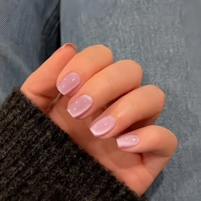 Dusty Pink Cat Eye Press on Nails Short Square, SXVME Glitter Glue Sparkly Shiny Fake Nail With Design, Cute Bling Extra Coffin False for Women 30 Pcs