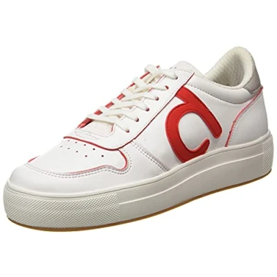 DUUO Unisex_Adult Fenix 044 Sneaker, White/Red, 9 UK