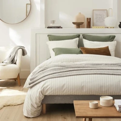 A cocoon of warmth and comfort with cotton flannel balance. A model that combines nostalgia for comforting fabric with a modern aesthetic. With fine elegant stripes, this bed linen embodies a timeless classic, easy to combine with other patterns or plain shades. This product is sold alone and can be supplemented with other products in the range. Flannel is a soft fabric, traditionally used for winter clothing due to its warm feel and comfort. Its tight fibres and fluffy look allow it to retain heat, making it a preferred choice for those who want to stay warm during the winter season. Changing the world and making the mind and senses travel is what Essix offers with its colorful stories that have been dressing up the pretty rooms for over 60 years. Thanks to constantly renewed creativity, Essix offers its customers excellent value for money, attention to detail and the balance between current and timeless models. Care instructions: washable at 40°C, tumble dry at a low temperature, iron at a maximum temperature of 150°C. Woven in Portugal; Dyed in Portugal; Made in Portugal Duvet Cover - Cotton - Soft - Comfort - Easy Care