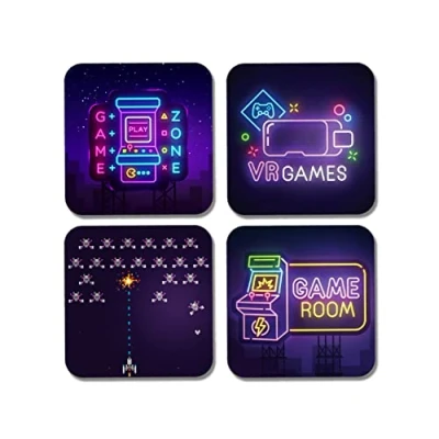 DV DESIGN 4 x Square Gamer Coasters Game Room Purple Gaming Boys Teen Kids Gift #77905