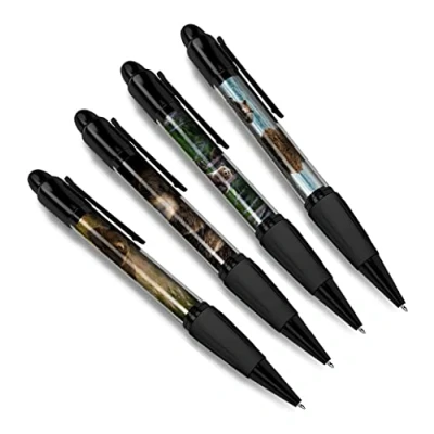 DV DESIGN Set of 4 Brown Bear Black Ballpoint Pens Grizzly Animal Nature Wildlife Wild Travel Portrait Boys Girls Men Women Theme Pen #79426