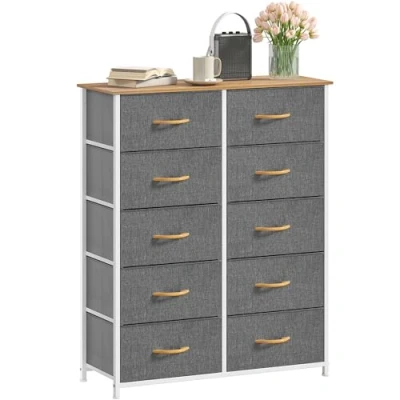 DWVO Chest of Drawers,Fabric Drawers Bedroom Cabinet With 10 Drawers,Dresser for Bedroom,Living Room Handles,Wood Top and Sturdy Steel Frame,Grey