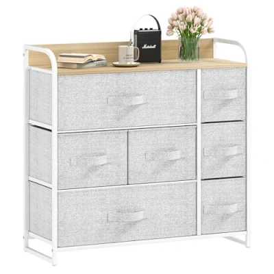 DWVO Chest of Drawers,Fabric Drawers Bedroom Cabinet With 7 Drawers,Dresser for Bedroom,Living Room Handles,Wood Top and Sturdy Steel Frame, Light Grey