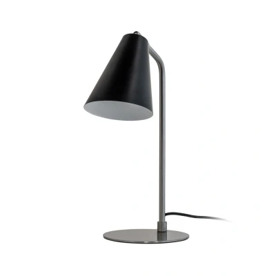 Lights.coOswald table lamp in a modern colour combination Black lampshade and a brushed steel frame - this is how the metal Oswald table lamp from Dyberg Larsen presents itself. The lampshade can be rotated and swivelled, allowing the light direction to be highly customised. The on/off switch is integrated into the black textile cable. The inside of the black lampshade is white for optimum light reflection.