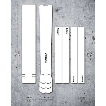 Clear frame protector with DYEDbro logo printed in black.Due to variances in manufacture there may be a slight difference in tone from one protector to another.Designed to protect frame top tube, down tube, seatstays and chainstays with 8 pieces in total.Fits all bikes.Eliminate paint chips and scuffs to all protected areas.