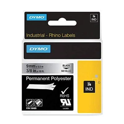AmazonDYMO Polyester Permanent IND. Label colour: black on metallic background. Product colour: multi-coloured. Material: polyester. Packaging type: box. Strap width: 9 mm. Strap length: 5.5 m.