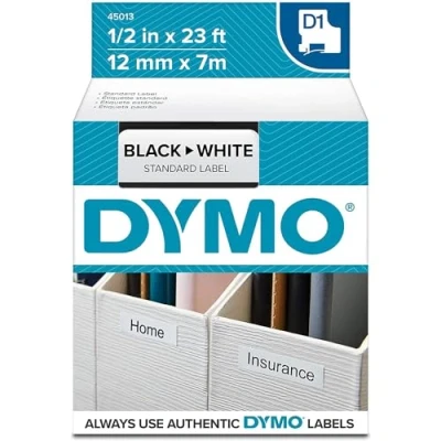 Dymo D1 Standard Labelling Tape 12mm x 7m Black on White