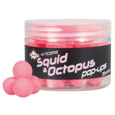 Dynamite N Ticers Squid & Octopus Pop Ups 15mm, Super Buoyant Hi Vis ups, Highly Flavoured, Ideal for Ronnie and Chod Rigs, Long Term Attractor Release.